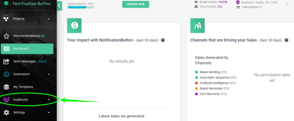 - In the left menu, select “Audiences“.