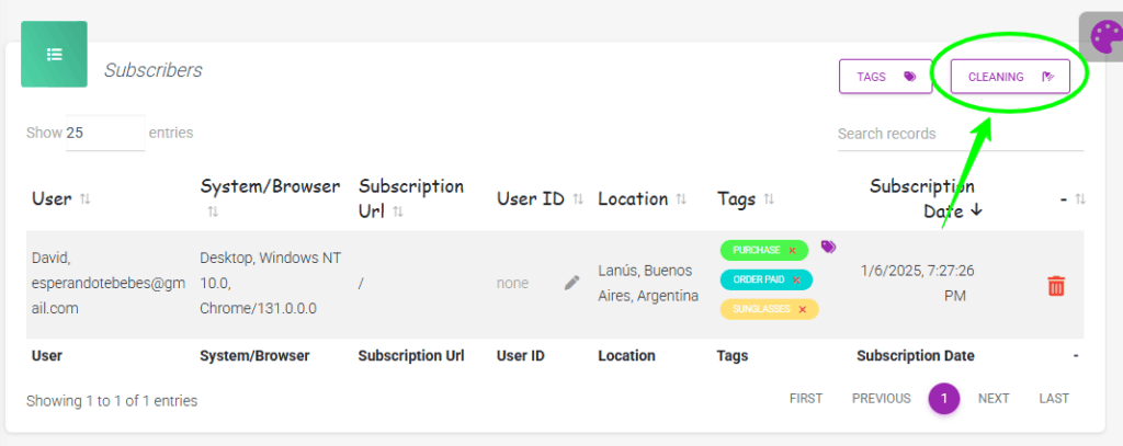 - On the subscriber list screen, you’ll find a “Clean up” button; click it.