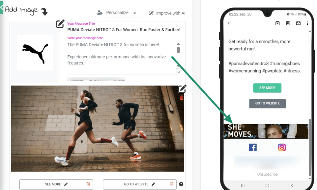 Once you save the changes, the platform will automatically apply this design to all emails that come from your account. You don’t need to edit each campaign separately.